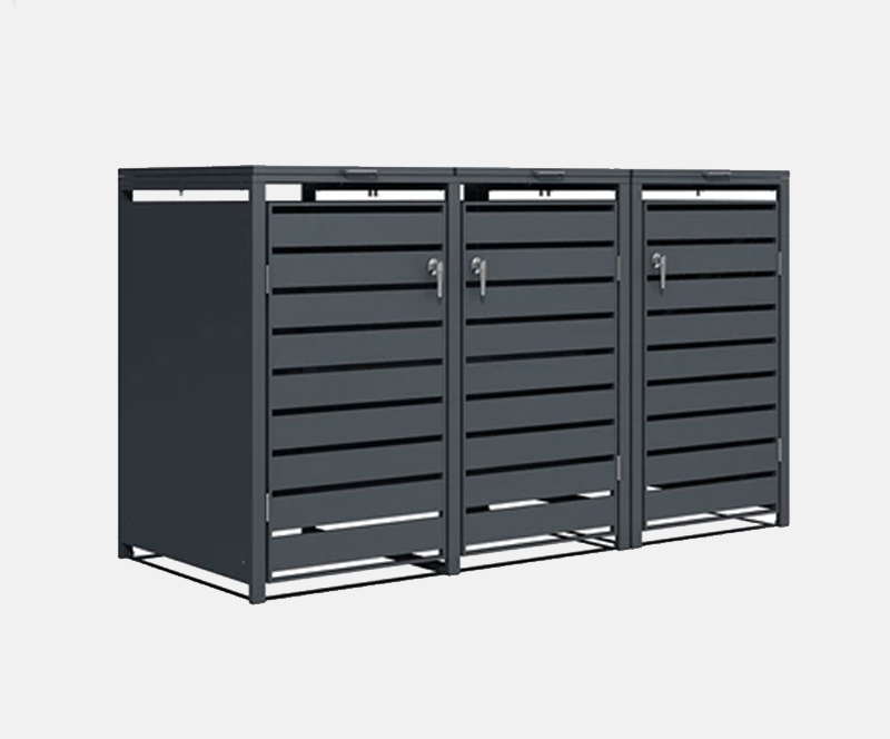 Triple Wheelie Bin Cover for garden and backyard. Hide the wheelie bins with this smart solution. Sleek and modular design. Built for durability and long lasting. Enhance the outdoor environment and reduce odours.